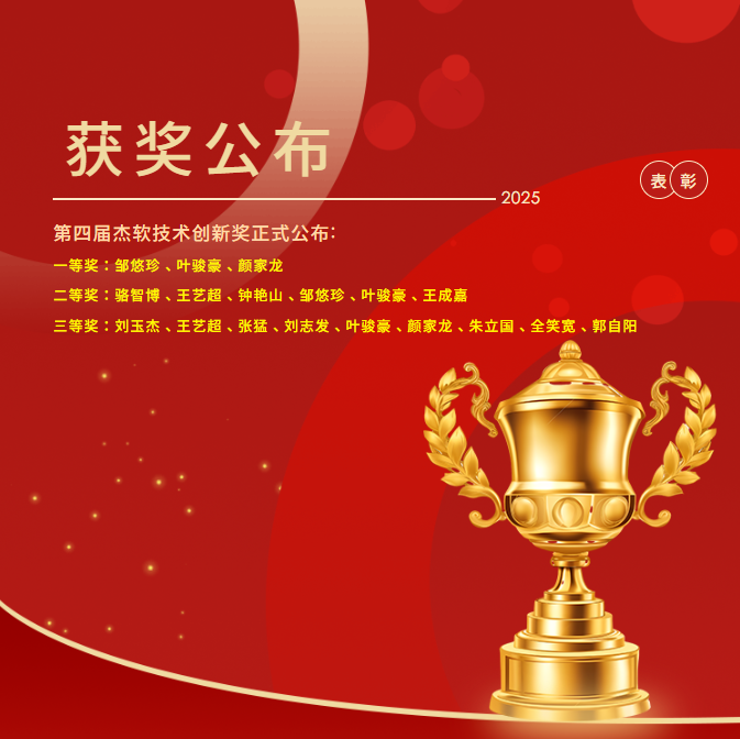 近日,杰软科技集团正式发布2025年度技术创新奖评选结果。在人工智能技术蓬勃发展的背景下,本次评选成果尤为显著。全公司各部门积极申报,共提交创新作品18件,其中人工智能相关项目占比超过60%,彰显了杰软在AI领域的深厚积累。经过严格评审,最终10项卓越成果脱颖而出,展现了从基础研究到产业应用的完整创新链条。